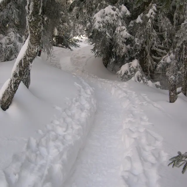 Met deze gemakkelijke sneeuwschoenroute kun je een omweg maken naar het uitkijkpunt als je op de rondwandeling Crêt du Poulet bent (tel dus de tijd op die je hebt besteed aan het sneeuwschoenwandelen tot aan de start). Je komt uit bij een uitkijkpunt bij een kruis.