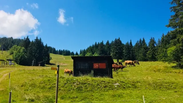 Après une bonne montée, vous arriverez au sommet où vous profiterez d'une vue magnifique à 360° sur les massifs environnants. En redescendant vous traverserez les alpages où les vaches paissent tout l'été durant.