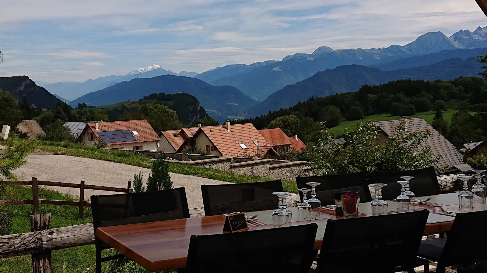Ce restaurant au pied des pistes de ski, offre un panorama exceptionnel sur Belledonne, le Mont Blanc et la Dent de Crolles.